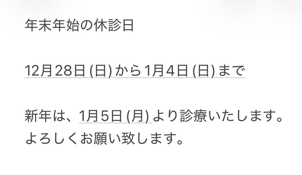 年末年始の休診日